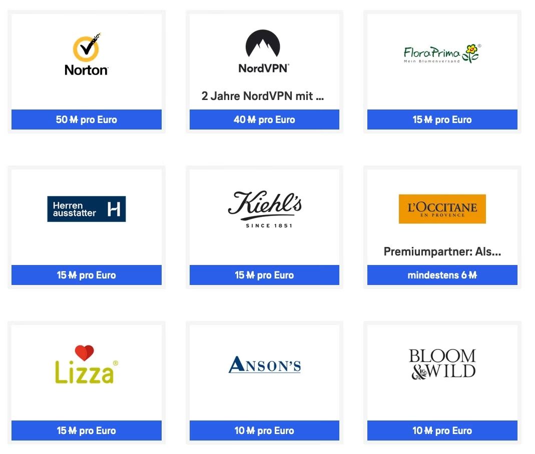 Zusätzlich zu den regulären Meilen für deine Einkäufe gibt es oft spezielle Aktionen oder Partnerangebote, bei denen du zusätzliche Meilen sammeln kannst. Das können beispielsweise Bonusmeilen für bestimmte Händler oder während bestimmter Aktionszeiträume sein.